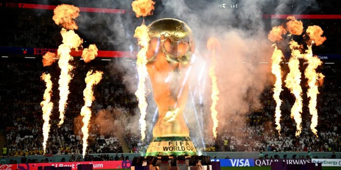 O ex-jogador Marcel Desailly, nascido em Gana, naturalizado francês e campeão do mundo pela seleção europeia em 1998, foi o responsável por entrar no estádio com a taça desta edição da Copa do Mundo. Depois, observado por um grupo de 60 mil pessoas, formado por personalidades do esporte, da política, das artes e por torcedores comuns, que lotavam as arquibancadas, o ator Morgan Freeman recebeu Ghanim Al Muftah, um influenciador local e portador da síndrome de regressão caudal, para deixar uma mensagem de inclusão e crítica às leis locais muito restritivas aos direitos das mulheres e das minorias.