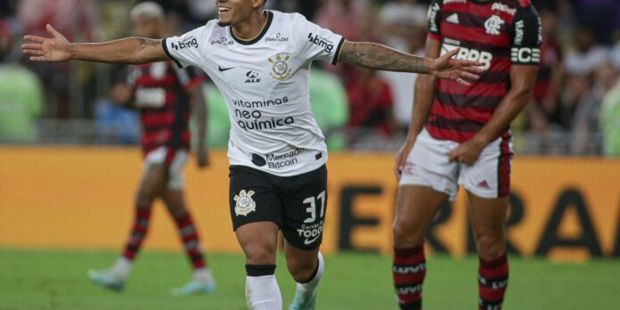 Mesmo contando com o apoio da sua torcida, o Flamengo viu o Corinthians abrir o placar aos 42 minutos do primeiro tempo, quando Mateus Vital cruzou rasteiro para Du Queiroz chegar batendo de primeira para superar o goleiro Hugo Souza.