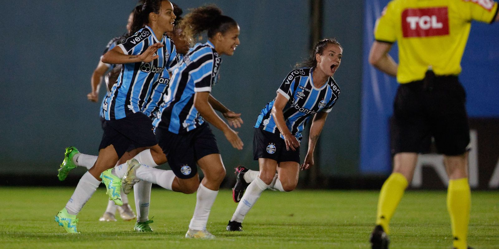 Detalhes da comemoração do gol que deixou as @GuriasGremistas na frente! Raquel Fernandes é o nome dela! #GRExINT (1-0)