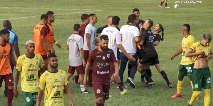 A Desportiva Ferroviária foi eliminada do Estadual, após derrota ontem (10) por 3 a 1 para a Nova Venécia, que avançou às semifinais. A agressão à Macielly Netto ocorreu no intervalo, após Rafael Soriano ter sido punido com um cartão amarelo. Após deferir a cabeçada na bandeirinha, o técnico foi expulso da partida.