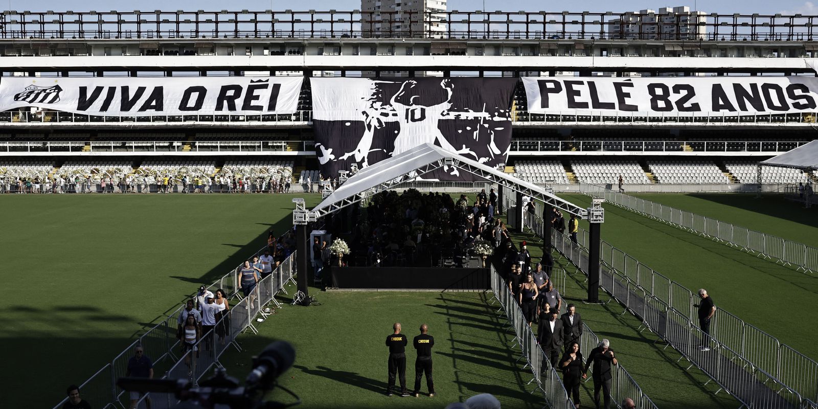 A cerimônia, com visitação aberta ao público, seguirá pela noite e madrugada, com término às 10h de terça (3). Depois, o corpo de Pelé seguirá em cortejo pelas ruas de Santos. O trajeto inclui a Avenida Coronel Joaquim Montenegro (conhecida como Canal 6), onde vive a mãe de Pelé, Celeste Arantes, que completou 100 anos no último dia 20 de novembro. De lá, o corpo do camisa 10 será levado à Memorial Necrópole Ecumênica, para sepultamento ao meio-dia, em cerimônia restrita aos familiares.
