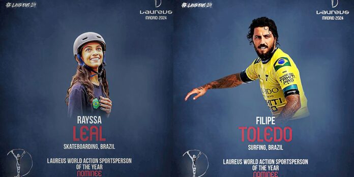 A skatista maranhense Rayssa Leal e o surfista paulista Filipe Toledo foram indicados, pelo segundo ano consecutivo, ao Prémio Laureus, o mais relevante na área esportiva. Ambos concorrerão em uma das oito categorias do prêmio: a de melhor atleta de esportes de ação, junto com outros quatro indicados, representantes dos Estados Unidos, África do Sul, Inglaterra e Austrália.