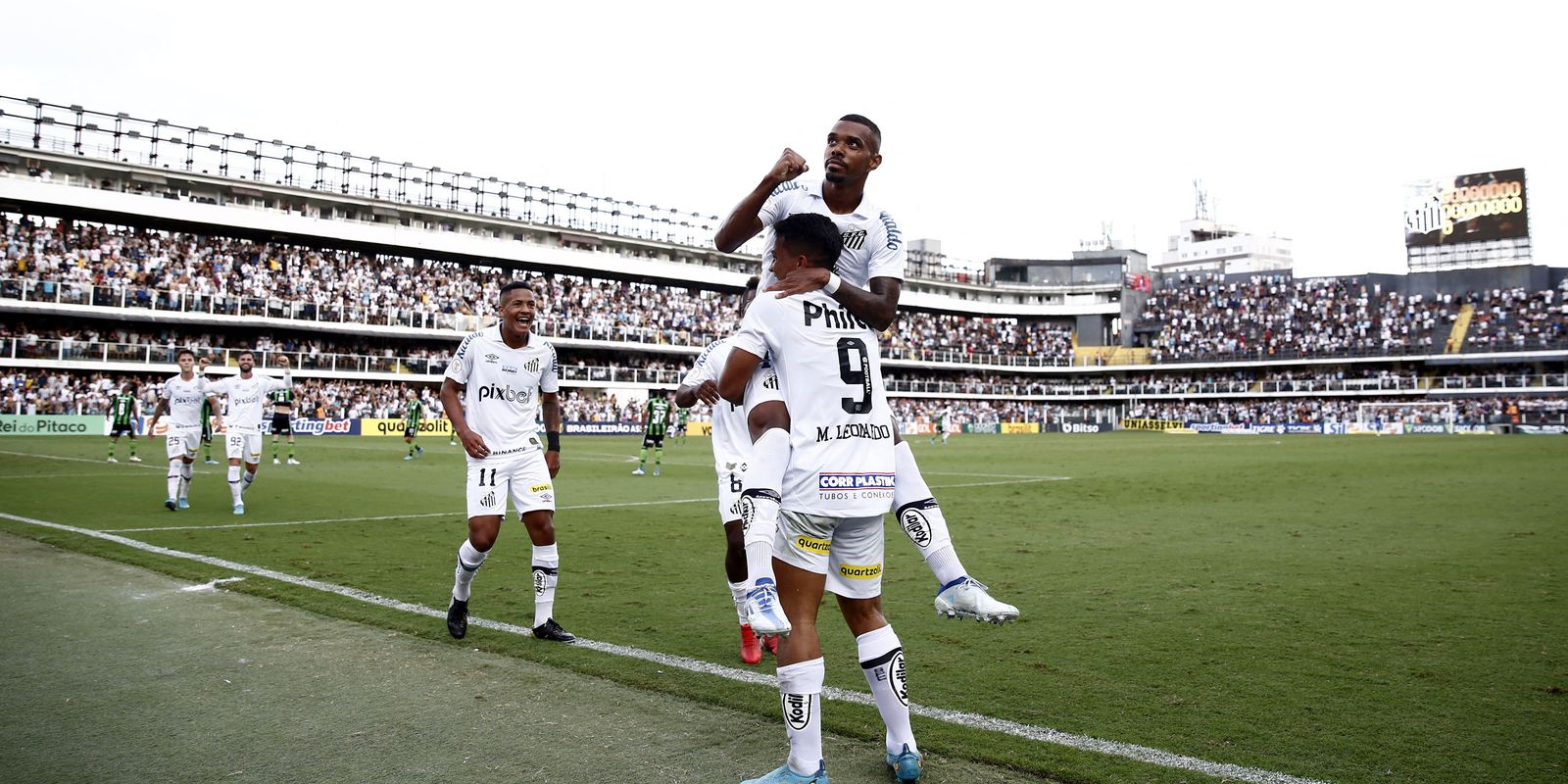 Santos domina o América-MG no Alçapão e vence por 3 a 0, com gols de Marcos Leonardo e Zanocelo (2)! pic.twitter.com/fR9iIyaqph