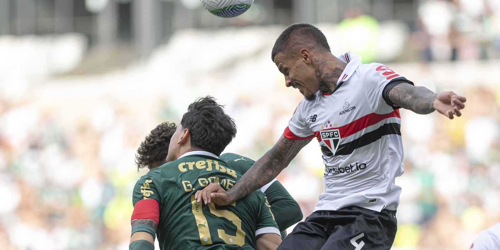 Um minuto depois, o São Paulo, enfim, assustou, após erro de Weverton, que saiu jogando errado e deu a bola nos pés de Calleri. O atacante entrou na área e finalizou, mas o goleiro alviverde se redimiu. Aos 35, foi a vez do meia Giuliano Galoppo ficar no quase, em cobrança de falta que raspou na trave esquerda do Palmeiras.
