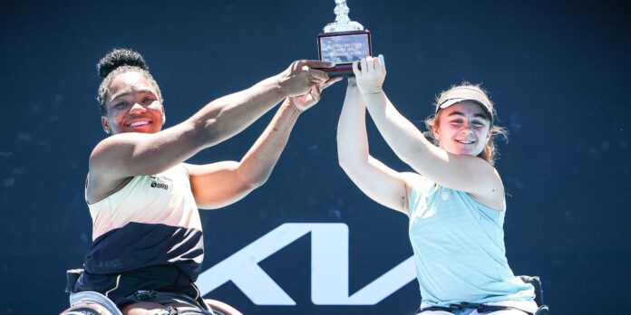 Os mineiros Vitória Miranda e Luiz Calixto, ambos de 17 anos, foram campeões no Aberto da Austrália de tênis em cadeira de rodas, com suas respectivas duplas na categoria júnior. A primeira a faturar o título nesta sexta-feira (24), em Melbourne, foi Vitória, número 1 do mundo no ranking júnior. Em parceria com a belga Luna Gryp, a brasileira aplicou um duplo 6/1 na final contra a dupla da norte-americana Sabina Czauz com a letã Ailina Mosko. Estreante em Grand Slam, Vitória pode assegurar seu segundo em Melbourne esta noite. Ela disputartítulo d: ela disputar o título da chave de simples contra Sania Czaus.