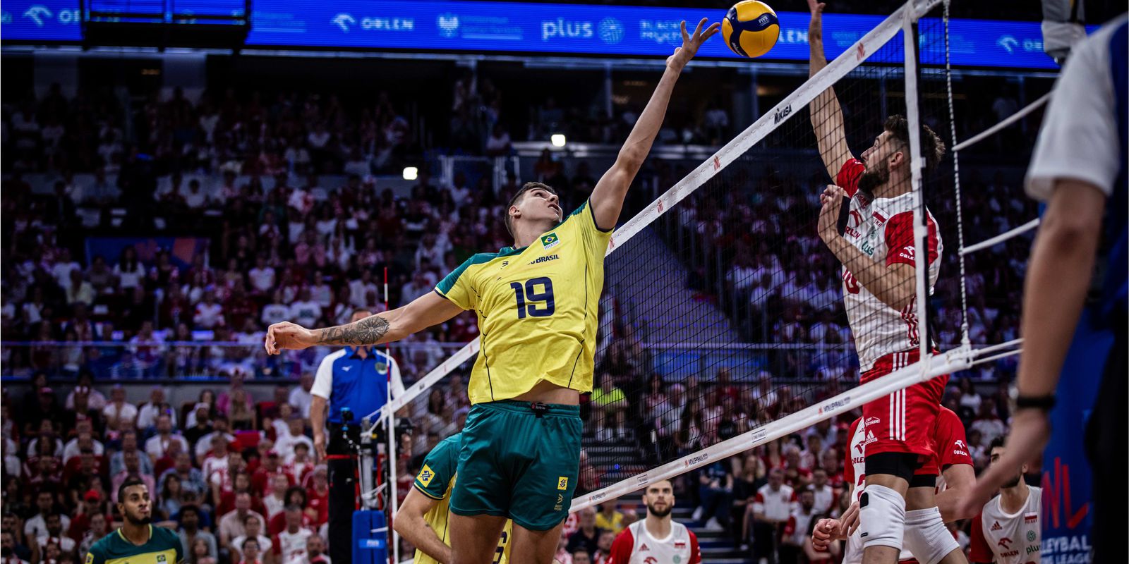 A seleção brasileira masculina de vôlei se despediu da Liga das Nações nas quartas de final, pela segunda edição consecutiva. A equipe foi superada pela anfitriã Polônia, número 1 do mundo, por 3 sets a 0 (26/24, 25/21 e 25/20), diante da torcida local que lotou o estádio Gdansk. O jogo ficou marcado por controvérsia na decisão da arbitragem em conceder o último ponto do primeiro set para a Polônia.