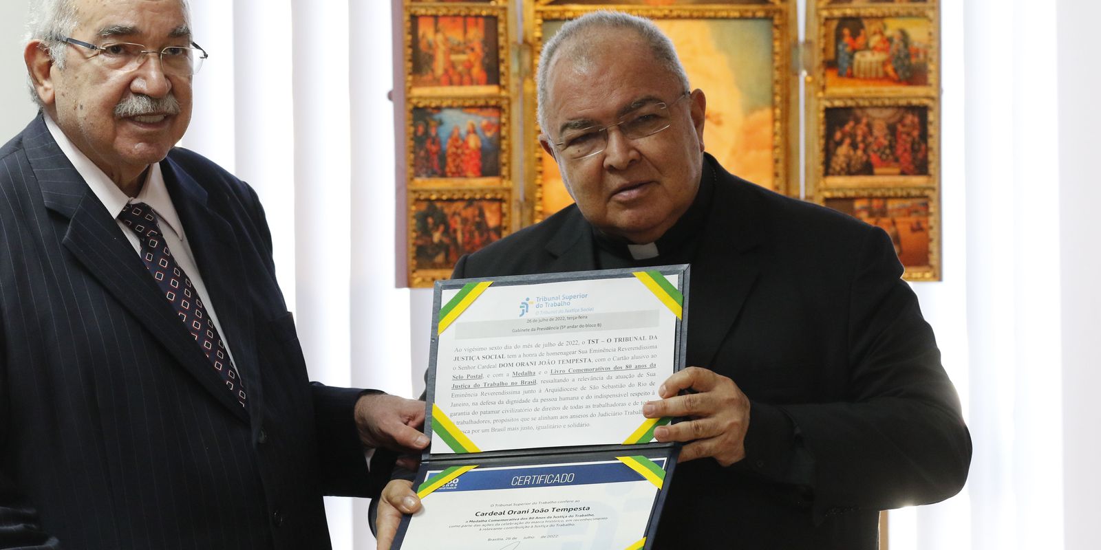 O presidente do TST e o procurador-geral do MPT participaram da cerimônia que entregou a Medalha dos 80 Anos da Justiça do Trabalho às procuradoras Juliane Mombelli e Guadalupe Couto, do MPT-RJ, à Arquidiocese do Rio de Janeiro e à Caritas-RJ, pela parceria no Projeto Ação Integrada: Resgatando a Cidadania.