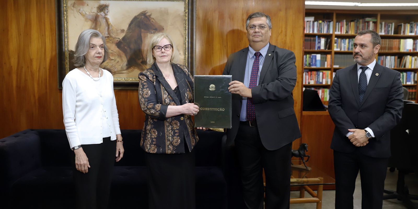 A entrega foi feita durante reunião de Dino com a presidente do STF, ministra Rosa Weber. O diretor da Policia Federal, Andrei Passos, também participou do encontro.