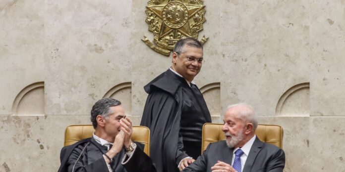 Durante a cerimônia, Dino foi ovacionado pelos convidados ao assinar o termo de posse. Único a discursar, o presidente da Corte, ministro Luís Roberto Barroso, destacou a trajetória do novo ministro antes de chegar ao Supremo e disse que ele é um “homem público que serviu o país nos Três Poderes”.