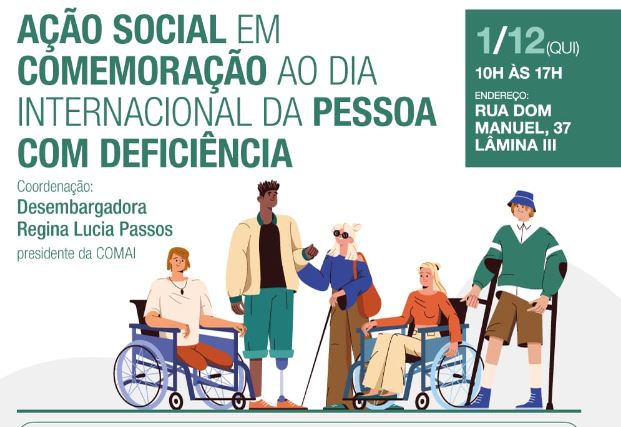 Concomitantemente, a desembargadora Regina Lucia Passos, presidente da Comai, coordenará uma roda de conversa com as participações dos advogados Geraldo Nogueira, especialista na área do Direito da Pessoa com Deficiência, e Luis André Gonçalves Coelho.