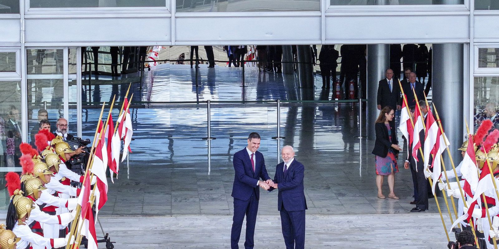 Após os atos no Palácio do Planalto, Sánchez foi recebido por Lula para um almoço no Palácio do Itamaraty, do qual participaram diversas autoridades, como o presidente do Supremo Tribunal Federal, Luís Roberto Barroso. Ainda hoje, o presidente espanhol irá ao Congresso Nacional para encontro com o presidente do Legislativo, senador Rodrigo Pacheco (PSD-MG).