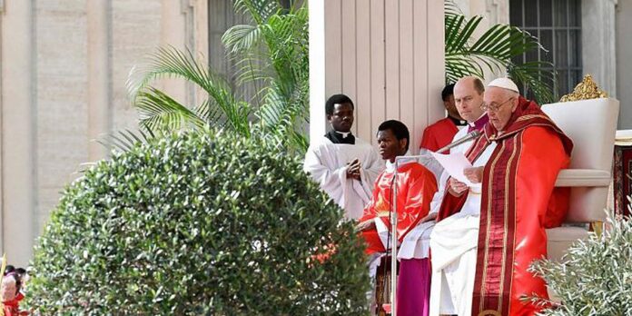 Francisco conclamou os presentes à cerimônia, estimados em 50 mil, a cuidar das pessoas abandonadas, que, segundo ele, estão com Cristo. Conforme a tradição, a maioria dos fiéis portava ramos de oliveira provenientes da região italiana da Úmbria.