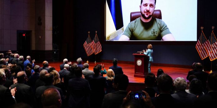 “Hoje não é suficiente ser o líder de uma nação, ser o líder do mundo significa ser o líder da paz. Ser forte é estar pronto a lutar pela vida dos cidadãos do mundo. Ter direitos humanos, direito de viver decentemente e de morrer quando sua hora chegar e não quando seu vizinho decidir. Hoje o povo ucraniano está defendendo não só a Ucrânia, estamos lutando pelos valores da Europa e do mundo, pelo futuro”, afirmou Zelensky.