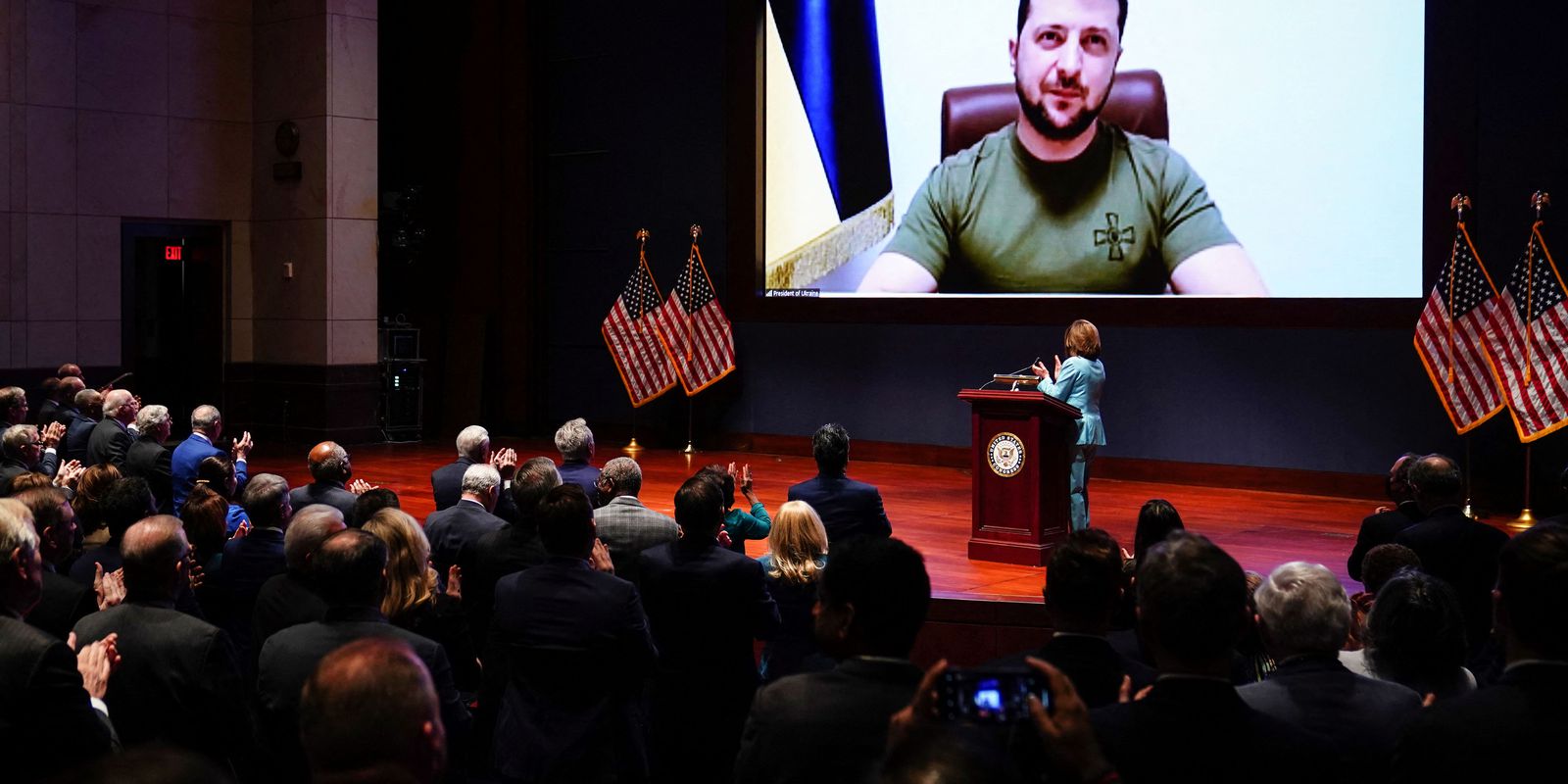 O presidente da Ucrânia, Volodymyr Zelensky, falou a membros do Congresso dos Estados Unidos na manhã de hoje (16), por volta das 10h da manhã (horário de Brasília). Zelensky fez um forte apelo pela criação de um espaço de exclusão aéreo nos céus do país, que permitiria que aviões de outros países possam abater aeronaves russas. Ele sugere a criação de uma aliança pela paz e pede que o presidente dos Estados Unidos (EUA), Joe Biden, seja o líder da paz mundial.