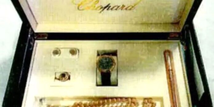 Outro presente do governo saudita, dado em 2021, um estojo com um relógio, uma caneta, abotoaduras, um anel e um tipo de rosário, da marca suíça de diamantes Chopard, avaliados em R$ 500 mil,  também foram desenvolvidas hoje em uma agência da  Caixa Econômica Federal, em Brasília.
