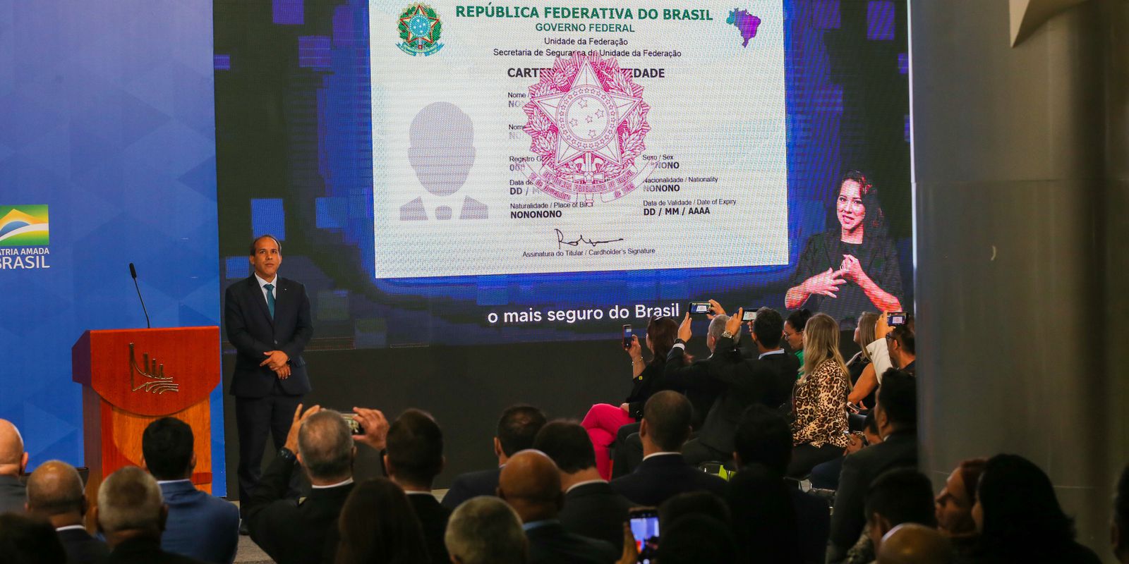 O novo modelo de passaporte brasileiro também foi apresentado pelo governo nesta segunda. O documento mantém o brasão da República na capa e traz uma série de novidades internas, a começar pela homenagem às regiões do Brasil por meio de ícones representativos dos biomas e da cultura de cada local.