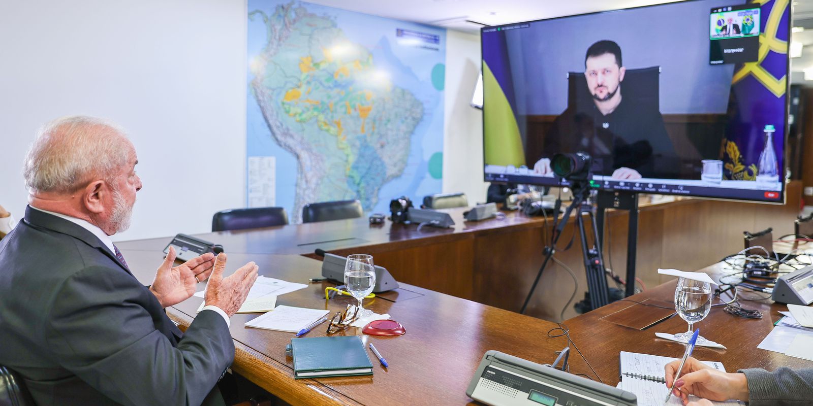Tive uma reunião por vídeo agora com o presidente da Ucrânia, @ZelenskyyUa. Reafirmei o desejo do Brasil de conversar com outros países e participar de qualquer iniciativa em torno da construção da paz e do diálogo. A guerra não pode interessar a ninguém.