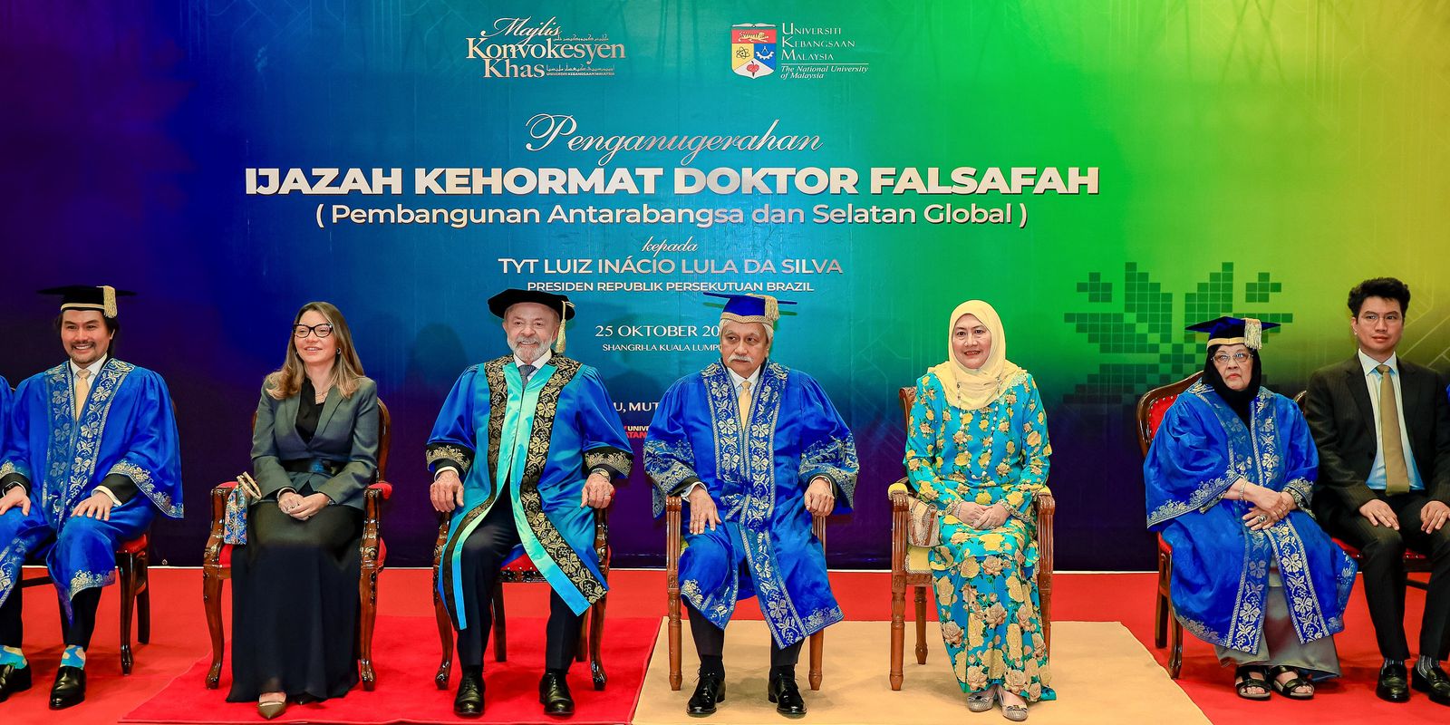 O presidente Luiz Inácio Lula da Silva voltou a criticar a continuidade da guerra em Gaza e a resistência mundial em criar um Estado palestino. A declaração foi dada neste sábado (25), durante a cerimônia de recebimento do título de doutor Honoris Causa em Filosofia e Desenvolvimento Internacional do Sul Global, concedido pela Universidade Nacional da Malásia, em Putrajaya, capital administrativa da Malásia.
