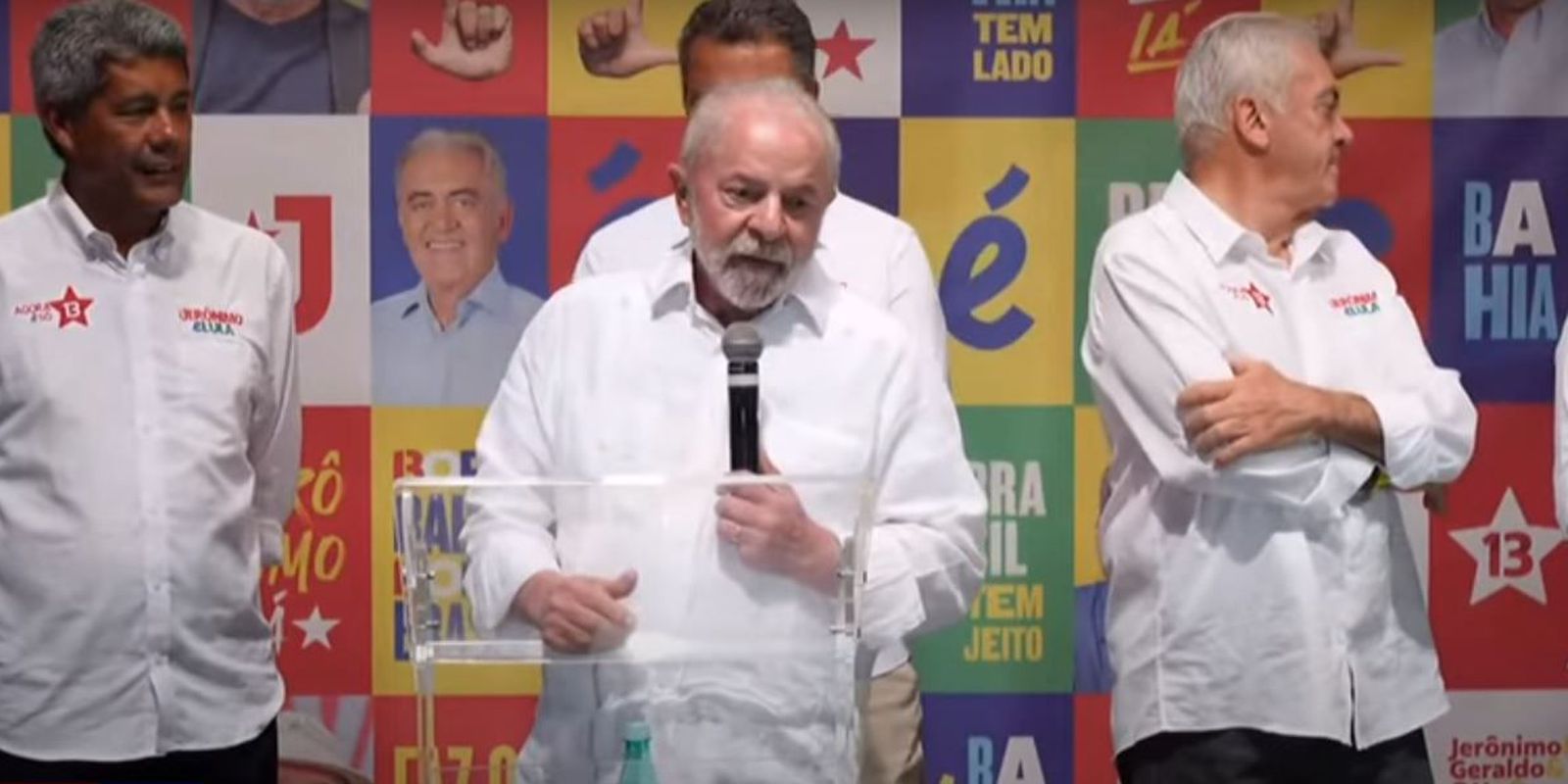 Do Rio de Janeiro, Lula seguiu para Salvador (BA). Às 16h20, ele e Jerônimo Rodrigues (PT), candidato ao governo da Bahia, atenderam a imprensa no Teatro Vila Velha, antes de seguir para uma caminhada pela capital baiana. Lula não respondeu a perguntas de jornalistas, mas falou que pretende fazer uma política tributária progressiva. “Vamos ter que fazer uma política tributária correta. Não é possível que um trabalhador que vá comprar um quilo de feijão pague o mesmo imposto que paga o presidente do Santander nesse feijão. É preciso que haja uma política tributária progressiva e que, quem ganha mais, pague mais. Por isso estamos propondo que [quem ganhe] até R$ 5 mil não vão mais pagar Imposto de Renda, serão exoneradas”, disse.