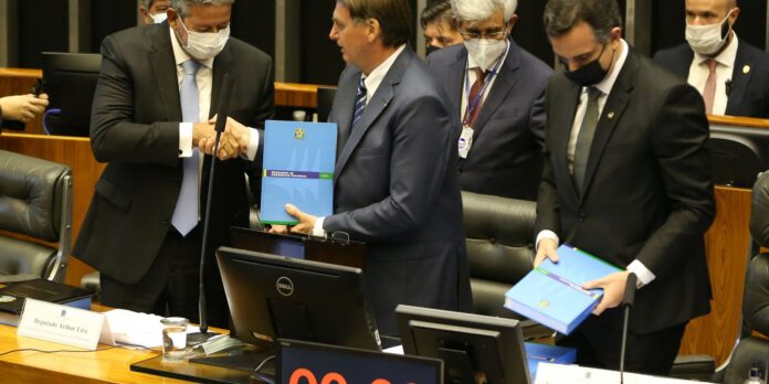 Os presidentes da República, Jair Bolsonaro, e do Supremo Tribunal Federal, Luiz Fux, se juntaram a Rodrigo Pacheco e Arthur Lira, presidentes do Senado e Câmara, em sessão solene de abertura dos trabalhos do Congresso em 2022 na tarde desta quarta-feira (2).