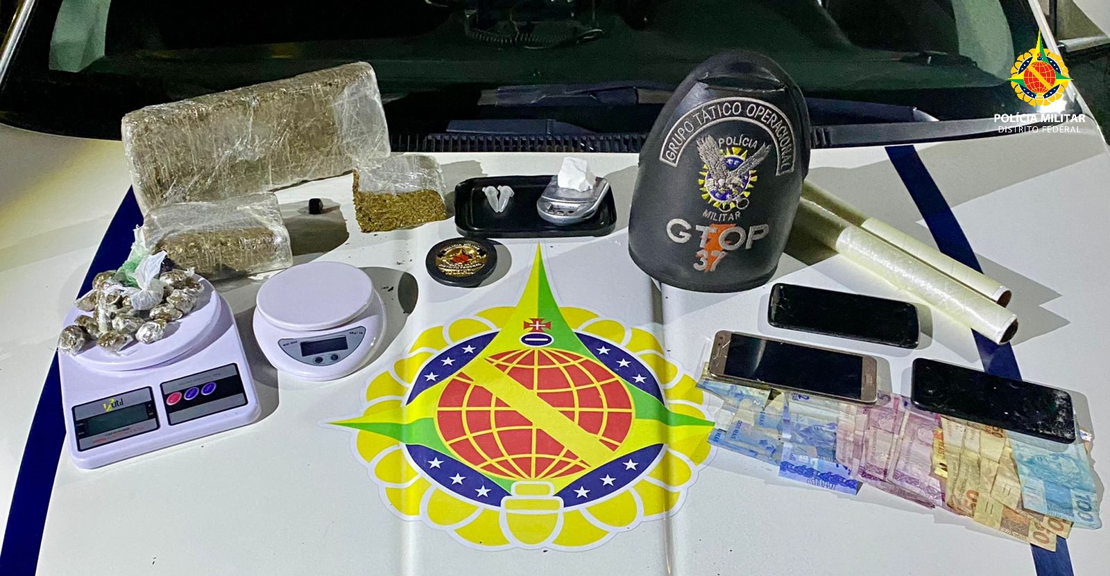 Policiais militares do Grupo Tático Operacional do 17º Batalhão (Gtop 37) apreenderam um jovem com 1,5Kg de maconha, às 19h desta segunda-feira (17). Os policiais receberam a informação que o adolescente de 17 anos estava vendendo drogas na Rua 9 de Vicente Pires. O suspeito foi localizado e encontraram com ele oito porções de maconha e R$ 58,00 em espécie.