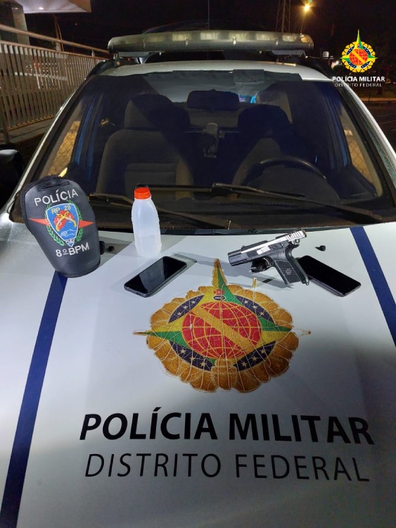Policiais da equipe de Rádio Patrulhamento do 8º Batalhão intensificavam o policiamento na QNN 23 quando ouviram disparos de arma de fogo. Testemunhas indicaram que os autores estavam em um Fiat/Pálio. O veículo foi encontrado e abordado. Com um adolescente foi localizada uma pistola calibre 9mm com uma munição intacta. O detido foi levado à Delegacia da Criança e do Adolescente para registro da ocorrência.