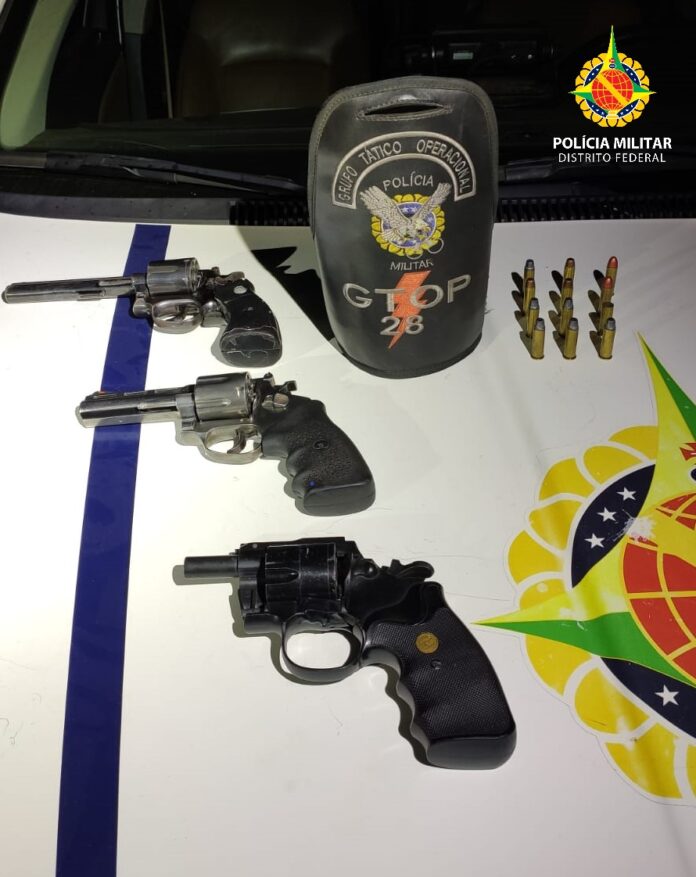 Um adolescente foi apreendido após ser flagrado com duas armas de fogo e um simulacro, por volta das 20h30 desta terça-feira (3) em Ceilândia.