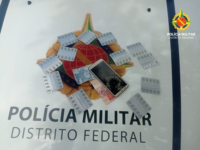 Policiais militares integrantes do 9º Batalhão receberam uma denúncia por volta de 14 horas de ontem, dia 22 de fevereiro, sobre a ocorrência de tráfico de drogas na Quadra 34 do Gama Leste, em frente a uma padaria.