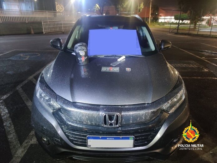 Policiais do GTOP 31-A foram informados pelo Copom (190) sobre um veículo Honda/HR-V de cor cinza, que havia sido roubado em Águas Claras, por dois adolescentes armados de faca.