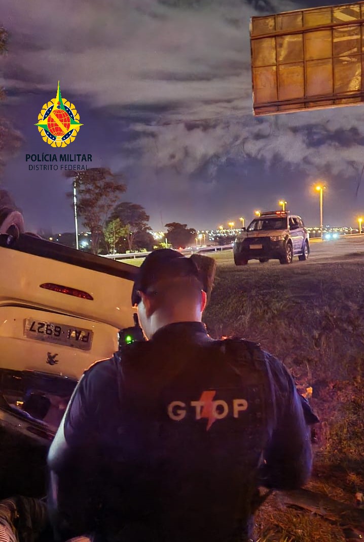 Policias militares do Distrito Federal prenderam um homem momentos após roubar um carro em Ceilândia e capotar na via Epia Sul, nesta quarta-feira (19), por volta das 21h.