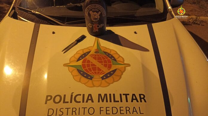 Policiais militares detiveram um homem armado com faca neste domingo (19), por volta das 16h40, No Guará.