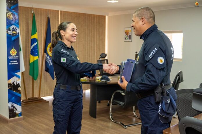 Na manhã desta sexta-feira, 22, a Subcomandante-Geral, coronel Ana Paula Barros Habka, e a comandante do Batalhão de Policiamento Escolar, coronel Renata Braz das Neves Cardoso, emocionadamente homenagearam o 1° Sargento Carlos Antonio de L Fortaleza do Batalhão de Policiamento Escolar. O destaque foi a atuação intrépida ao salvar a vida do jovem Yan Rodrigues de Delmondes, de apenas 15 anos, após um acidente durante uma partida de futebol no Colégio Cívico Militar do Centro Educacional 308 do Recanto das Emas.