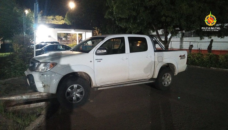 As equipes realizavam um ponto de bloqueio quando deram ordem de parada a uma caminhonete Hilux branca.