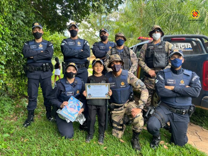 Policiais militares do Batalhão de Policiamento Rural (BPR) proporcionaram muita alegria para uma criança que fez aniversário na manhã deste domingo (23), no Setor de Chácaras Rajadinha em Planaltina.