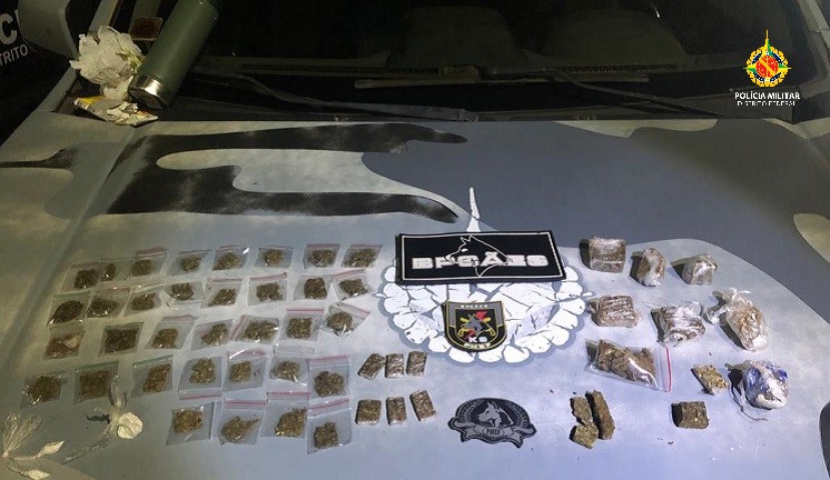 A Polícia Militar apreendeu diversas porções de maconha e cocaína na QNN 5, na noite deste sábado (30). A droga estava dividida em pequenas partes e embaladas para a venda.
