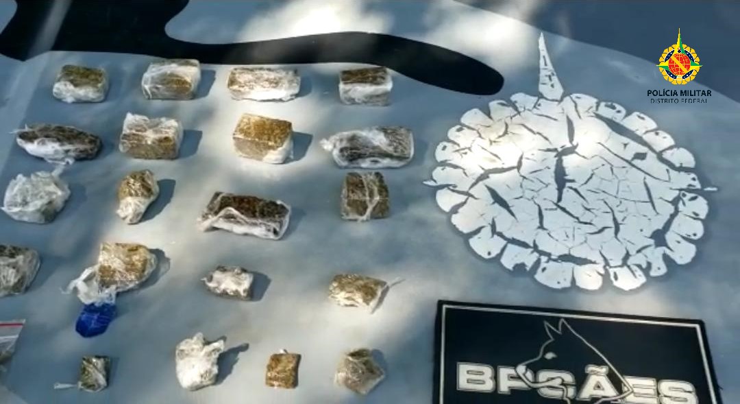 O prefixo do Bpcães 3186, quando em patrulhamento na Quadra 5/7 de Ceilândia Norte, com auxílio da cadela Ipa, logrou êxito em localizar, 21 porções de maconha e 1 de cocaína fracionadas e prontas para a venda.