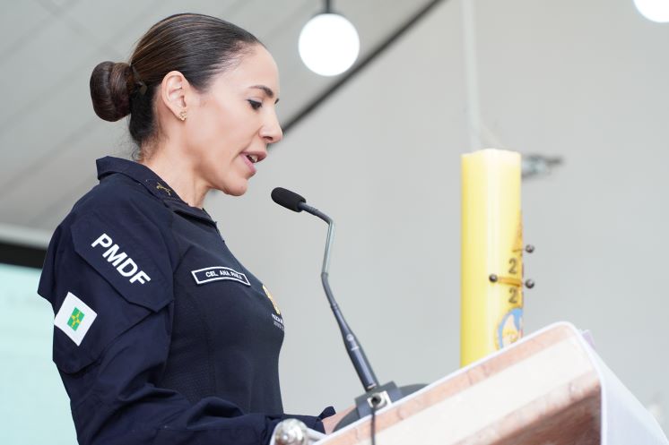 Já a Coronel Ana Paula Barros Habka, comandante-geral da PMDF, em seu discurso de agradecimento e reconhecimento aos membros da corporação policial, enfatizou a importância da união e do serviço à sociedade. Expressou gratidão pelo apoio recebido e destacou também a dedicação e treinamento dos policiais para proteger e servir à comunidade. Encerrou desejando bênçãos para o Brasil e para a PMDF.