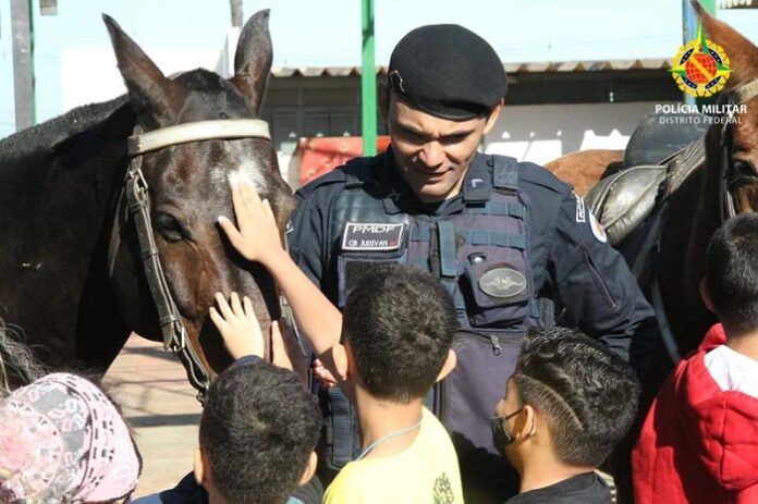 Para o evento, a PMDF contou com os experientes policiais cavalarianos e um ser ostensivo, carinhoso, sensível e muito forte; o cavalo. Com esse auxílio reluzente, policiais iniciaram o policiamento no perímetro escolar, acompanhando a entrada dos alunos, posteriormente, com prévio contato junto a direção da Escola Classe 40, foi realizado um momento cívico junto aos alunos, com hino nacional e palestra relacionada a prevenção criminal. Após, o grande momento, a entrada dos cavalos no ambiente escolar, onde as crianças tiveram contato com os policiais militares cavalarianos e seus estimados solipedes da PMDF.