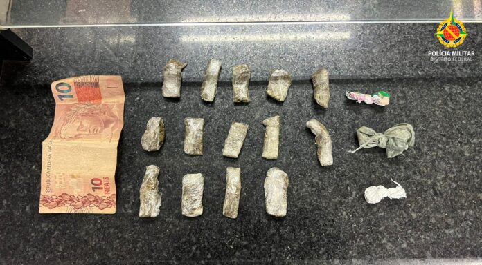 A equipe da PMDF realizou abordagens em um estabelecimento comercial na CNF 01 e encontrou 14 porções de maconha e duas sementes da mesma droga com as duas suspeitas.
