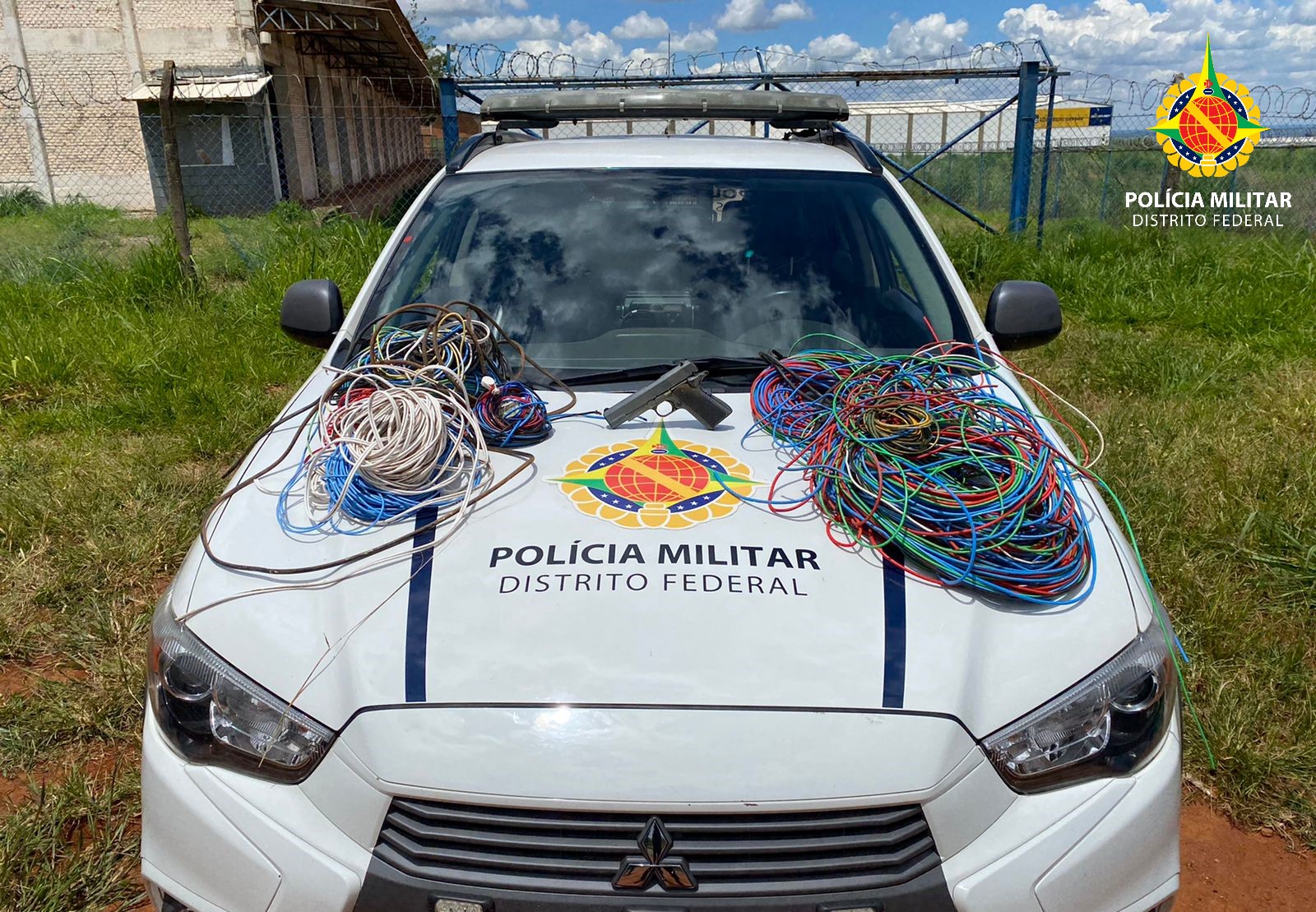 Um homem e um jovem foram detidos pelos policiais militares do 26º Batalhão enquanto furtavam cabos de energia em um galpão no Polo JK, em Santa Maria. A PMDF foi acionada, às 13h30 desta quinta-feira (10), para o atendimento de furto em andamento.