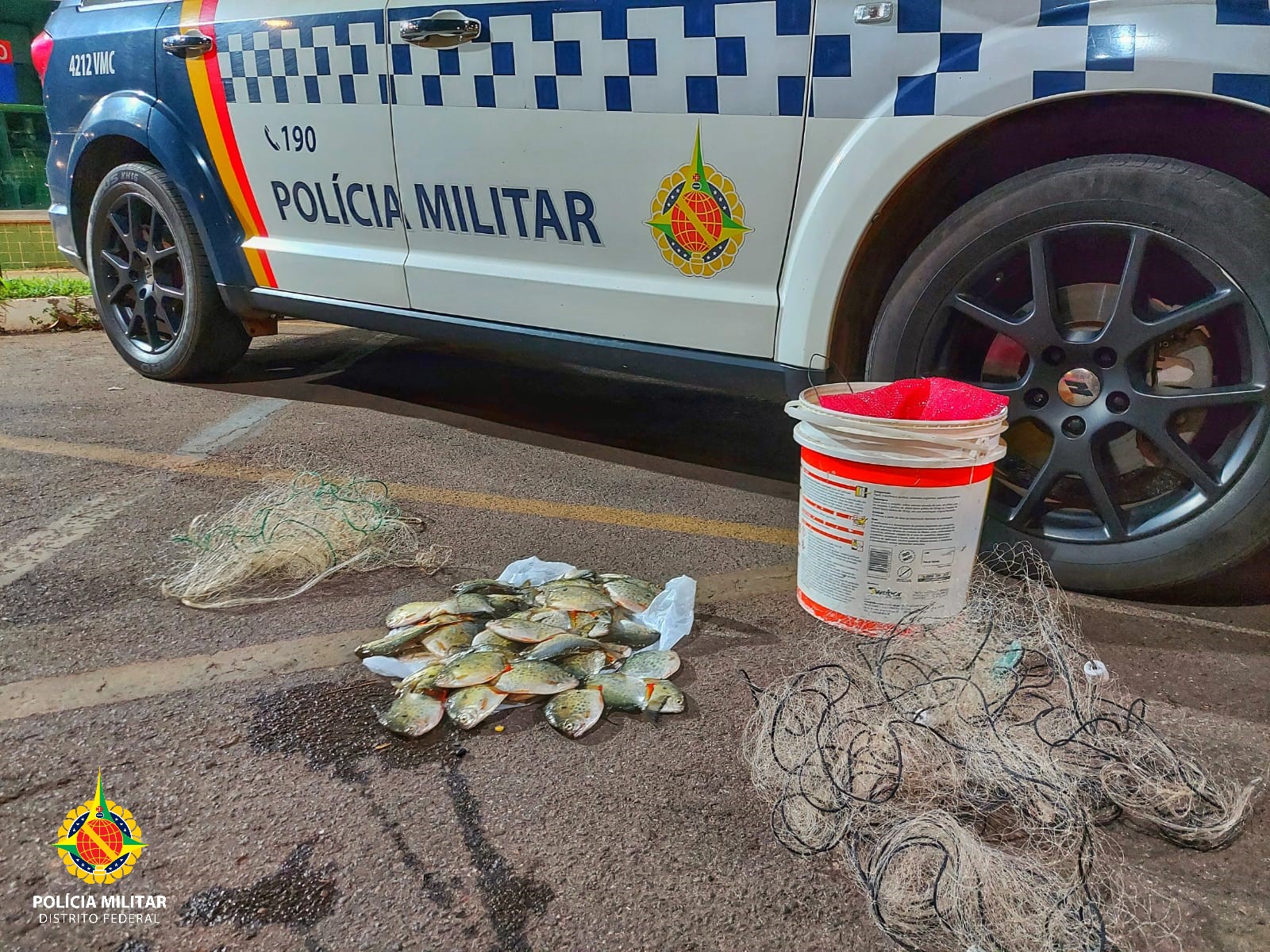 Dentro do carro foram encontrados cinco quilos de pacu prata em um balde. A pesca ilegal com a rede foi realizada na Represa de Queimados. Como foram usados petrechos não permitidos para a pesca, a dupla foi autuada na 30ª DP pelo crime contra os recursos pesqueiros. Os peixes foram doados para uma entidade filantrópica.
