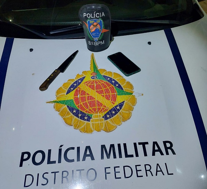 Com a aproximação da viatura, os homens dispensaram uma faca e um celular no chão. A abordagem foi realizada e verificou-se que o celular dispensado era da vítima de roubo e a faca foi a usada para cometer o crime. A dupla foi presa e encaminhada à Delegacia.