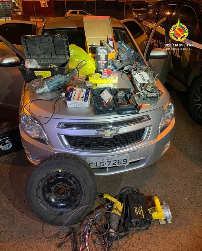 Os policiais conseguiram visualizar o veículo próximo ao Taguatinga Shopping. Ao ser dada ordem de parada, o motorista do Cobalt empreendeu fuga, sendo abordado no Pistão Norte. Dentro do veículo foram encontradas aproximadamente 1kg de maconha, uma balança de precisão, um estepe e diversas ferramentas de construção civil avaliados em R$ 5.000,00.
