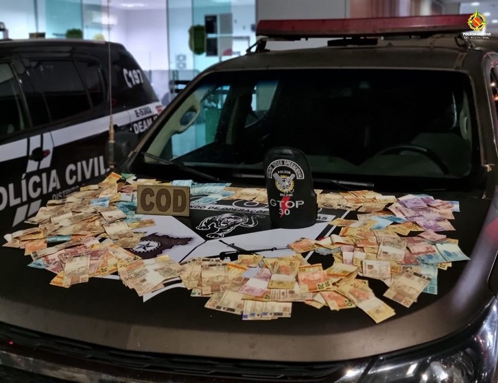 Com os detidos foram apreendidos a quantia aproximada de R$ 24.000,00 em espécie e vários comprovantes de transferências bancárias.