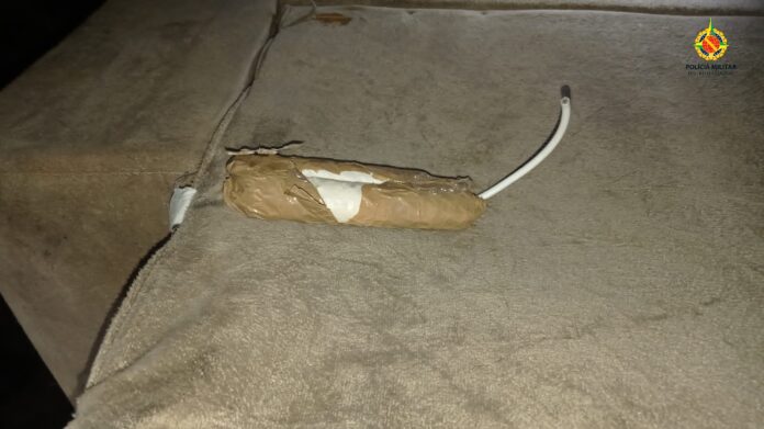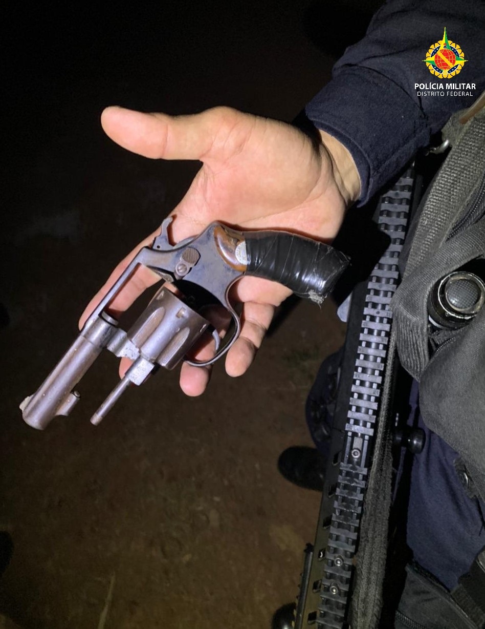 Uma emulsão explosiva (banana de dinamite) e um revólver calibre 32 foram apreendidos por policiais militares do Grupo Tático Operacional do 4º Batalhão (Gtop 24), por volta das 20h30 desta sexta-feira (29) no Guará.