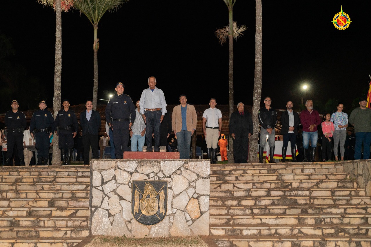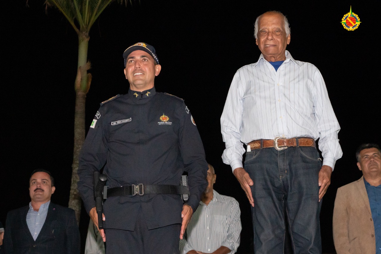 Em suas palavras o coronel Fábio Augusto agradeceu o major Aloysio pelo trabalho realizado, “Chegamos ao Regimento em 1996 e encontramos esse pasto verde, essa grama bonita com essa estrutura maravilhosa. Nós devemos ao senhor comandante, que desbravou esse Cerrado com os policiais pioneiros”, e concluiu com uma continência honrosa aos antigos comandantes.