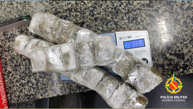 Policiais militares do 26º Batalhão apreenderam porções de maconha na QR 301, na Santa Maria, por volta das 18h, deste sábado (21).