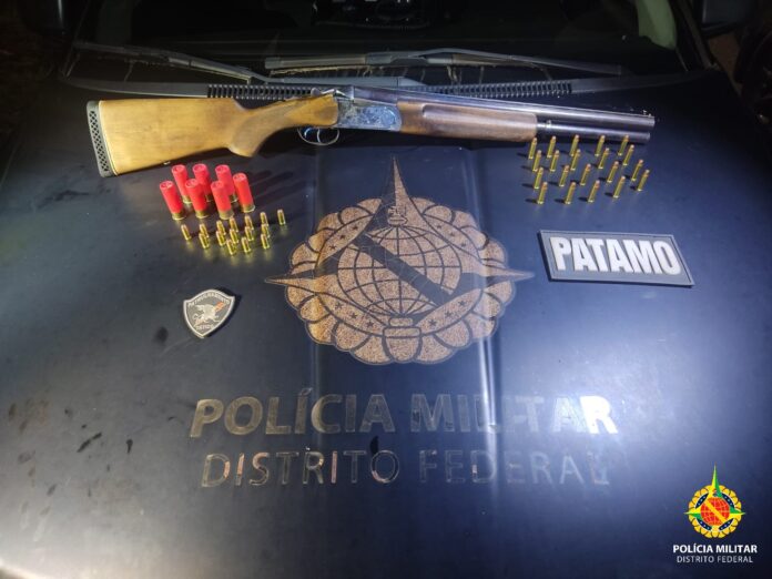 Um homem de 33 anos foi detido pelos policiais militares do Patamo com uma espingarda calibre 12 em sua posse. A equipe da PMDF soube da existência de um homem armado na Rua Eliel de Engenhos das Lajes, no Gama.