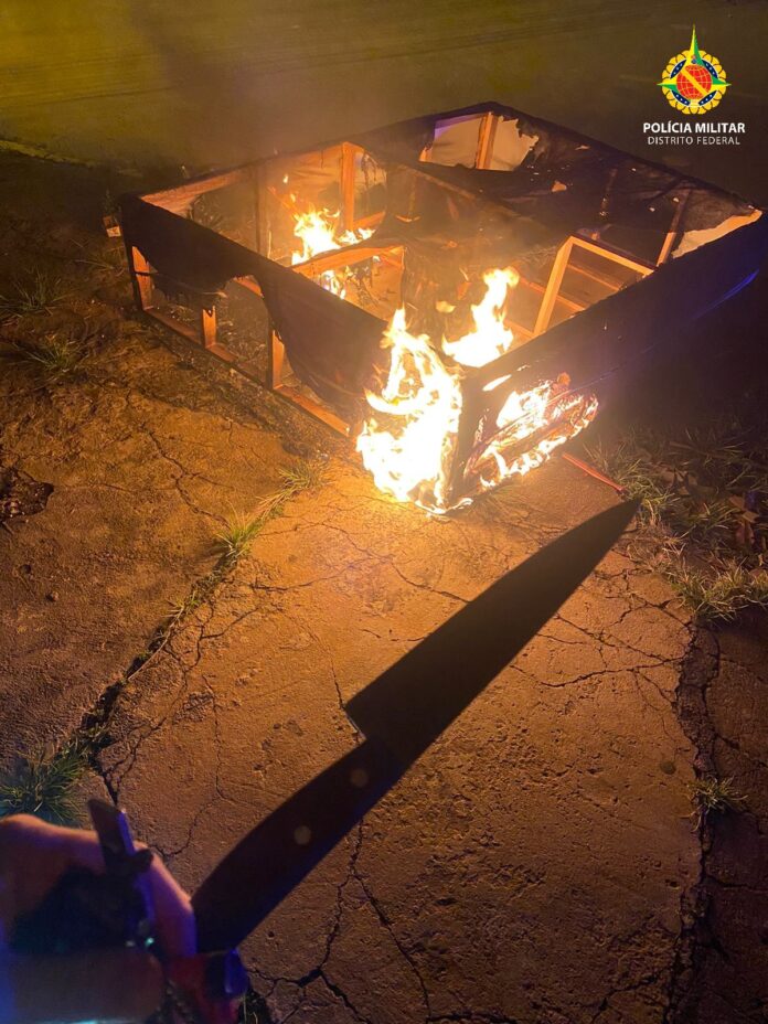 A senhora de 44 anos afirmou ao policiais do 2º Batalhão que sua filha lhe agrediu com socos e mordidas no rosto e na cabeça. No momento que a jovem tentou esfaqueá-la, foi contida por um amigo. Quando a equipe da PMDF entrou na casa encontrou a televisão quebrada e a cama queimada.
