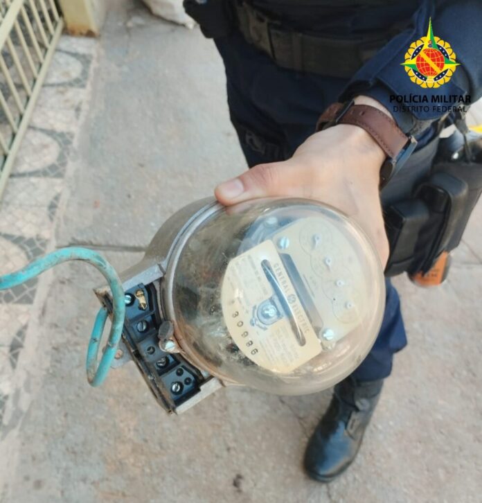 Chegando ao local, os policiais avistaram um homem saindo da casa com dois sacos e um balde contendo fios elétricos, torneiras tomadas e relógio de energia.